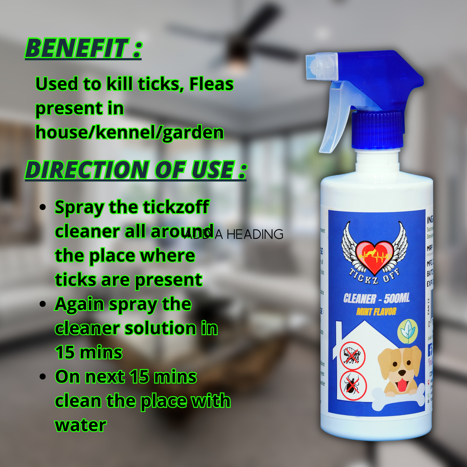The only product in India which can kill Ticks, Fleas & Mosquito instantly in Walls and floor.